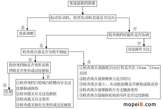摩托车维修论坛--变速器换挡困难故障诊断流程图