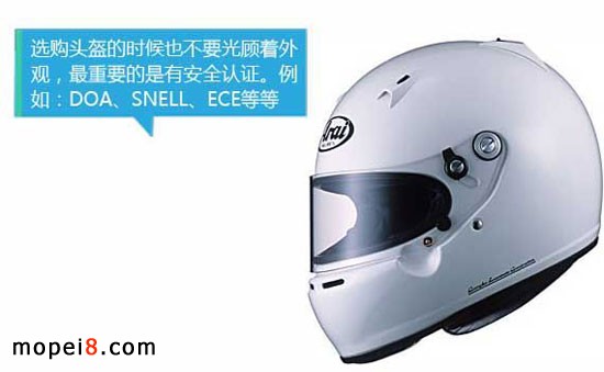 在选购头盔的时候也需要注意,头盔不是应付警察检查的道具或者炫个性的摆设,而是要切实具备防护能力。低价的头盔在缓冲性能上可能很差,漂亮的头盔也能不符合安全标准。目前市场上的头盔认证很多,请挑选有认证头盔。
