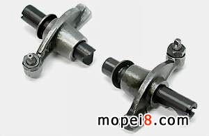 气门组件包含:进、排气门,气门内、外弹簧,气门油封,气门锁夹、气门盖。摇臂的一端通过摇臂上的调节螺钉,克服气门弹簧的弹力,使得进气门或排气门定时驱动,打开或者关闭。而气门又是靠弹簧的弹力回位到气门紧密贴合的密封状态。