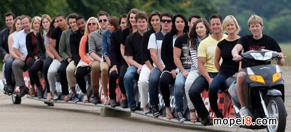 在管道工科林•福尔泽的巧手之下,一辆世界上最长的摩托车诞生了,这辆摩托车长达22米(72英尺),设有25个座位。为了能使车载入吉尼斯世界纪录,科林必须驾车行驶100米的距离,不过结果他竟驾车行驶了一公里。现在他要做的便是将记录了这一过程的录影带以及见证人的证明一起寄往世界吉尼斯纪录,以便获得认证。吉尼斯世界纪录到目前为止所记录的最长的摩托车车身长为14米。