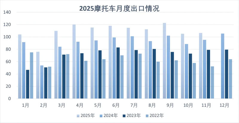 11月摩托车出口106.37万辆,环比增长1.21%,同比增长11.74%;出口金额7.15亿美元,环比增长4.91%,同比增长18.35%。其中,二轮摩托车出口101.55万辆,环比增长0.94%,同比增长12.09%;三轮摩托车出口4.82万辆,环比增长7.05%,同比增长4.92%。